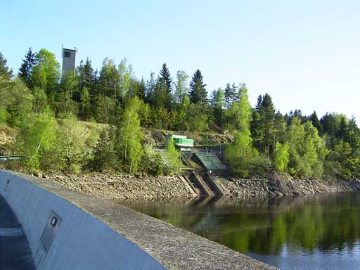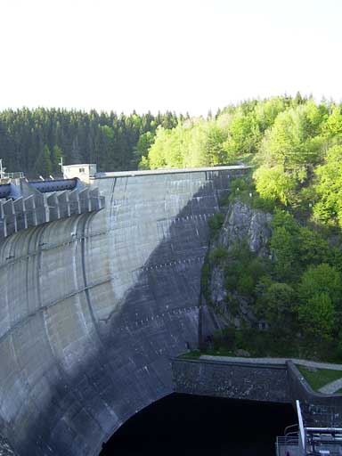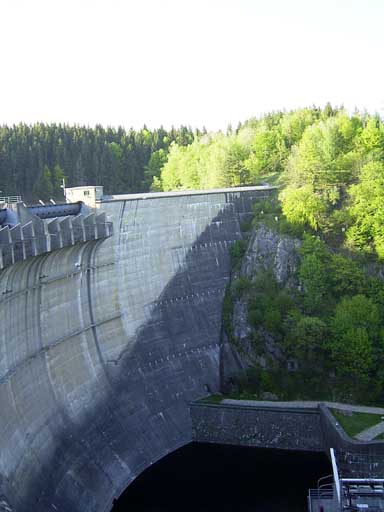 Blick von der Staumauer nach unten