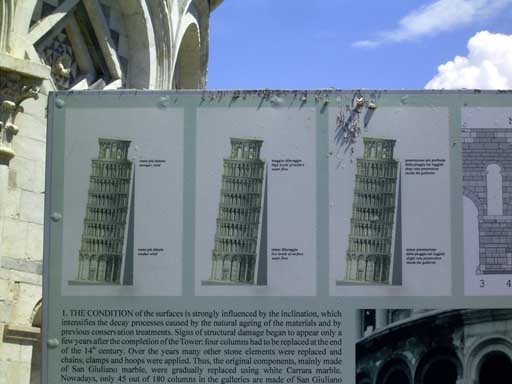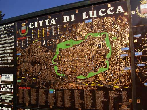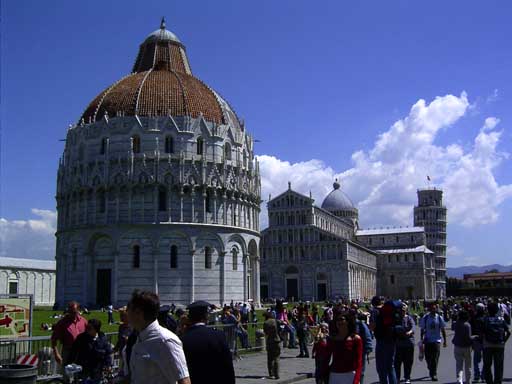 Am 6. Mai 2005 gings zuerst nach Pisa zum schiefen Turm, der wahrlich extrem schräg ist und zur dortigen Kathedrale. Nach dem Besuch in Pisa bin ich nach Lucca gefahren, eine Stadt umgeben von einer riesigen Stadtmauer rund 15Meter hoch und 10 Meter dick.