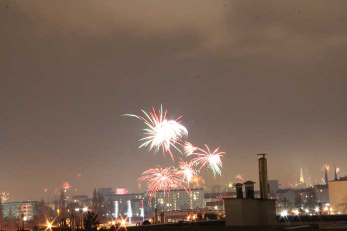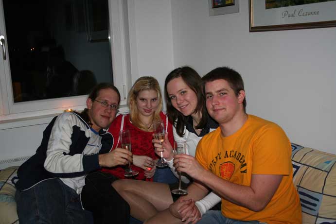Zum Jahreswechsel zu 2008 waren wir, Sonička, Sisa, Christoph und ich bie Christoph in der Wohnung in Brigittenau (Wien 20). Haben Fondue gemacht, anschließend ein wenig gezockt (Verflixxt! und Singstar), ehe es Minternacht wurde und der Himmel über Wien hell wurde...