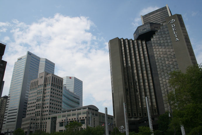 At the beginning of my tour through Canada, I started in Montreal, Quebec. I spent a couple of days in the middle of June. I visited the "Old Montreal", the Olympic Stadium, the mount Royal and took pictures of the Skycrapers there. I have been to a couchsurfing party there and met many interessting people. I have been hosted by Isabelle, an engineer working in downtown.